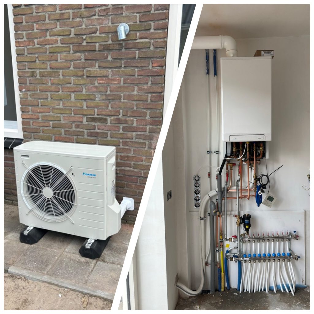 Een hybride warmtepomp combineert een elektrische warmtepomp met een bestaande of nieuwe gasketel. De warmtepomp verzorgt het grootste deel van de verwarming, terwijl de ketel alleen bijspringt bij piekbelasting of zeer lage buitentemperaturen. Dit maakt een hybride systeem bijzonder geschikt voor bestaande woningen die (nog) niet volledig klaar zijn voor all-electric verwarming.